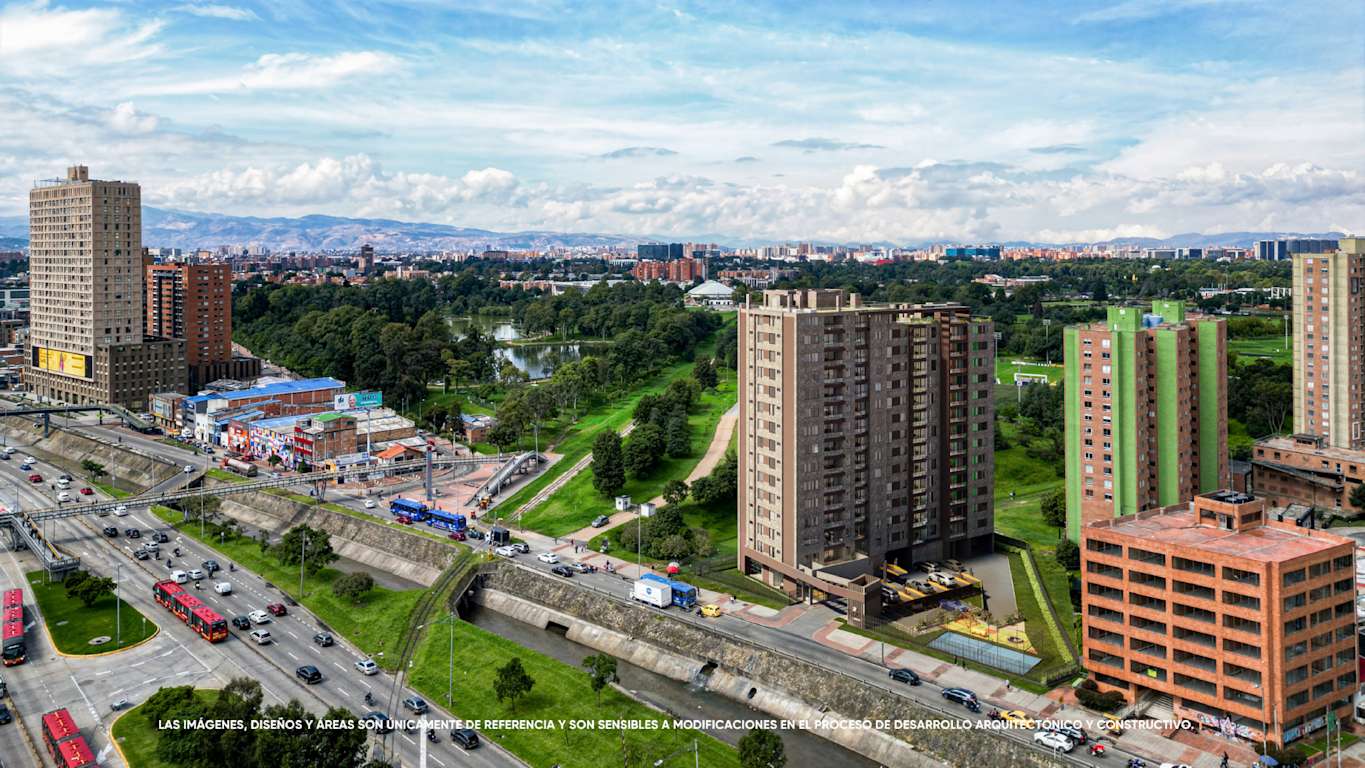 Tu futuro hogar está ubicado sobre la Carrera 30, con vistas naturalmente panorámicas al Parque de los Novios, en un punto estratégico de la capital.